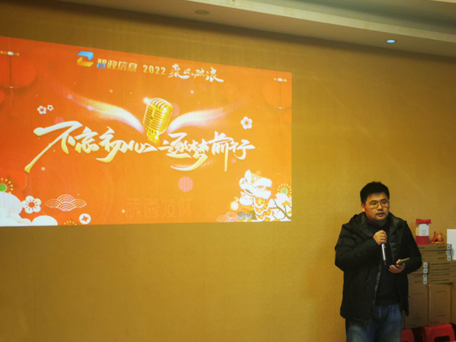 2022年1月22日,湖北智政信息科技有限公司2022年会圆满举行。会上,公司总经理程哲宇先生致辞,带领大家回首过往,展望未来,提出2022年发展目标及规划方向。回望2021年智政小伙伴们的工作,智政获得今日成绩来之不易,智政所有小伙伴为此付出了大量心血和汗水,公司也对大家表示衷心感谢,会上领导对大家的工作给予了充分的肯定和高度评价,并提出了2022年新的期望和要求。也希望各位智政小伙伴再接再厉,克服困难,努力开创各项工作新局面。